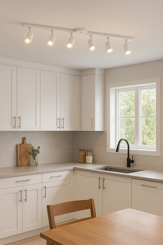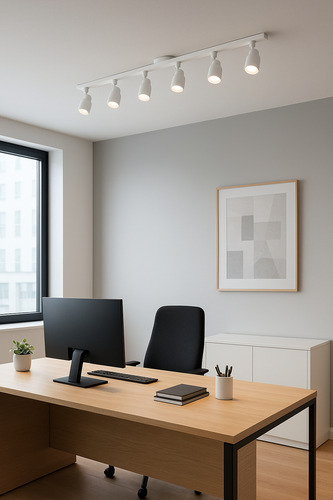 Viene con los spots rectos de 5 cm de diámetro y 8,5cm de altura total.