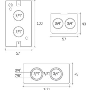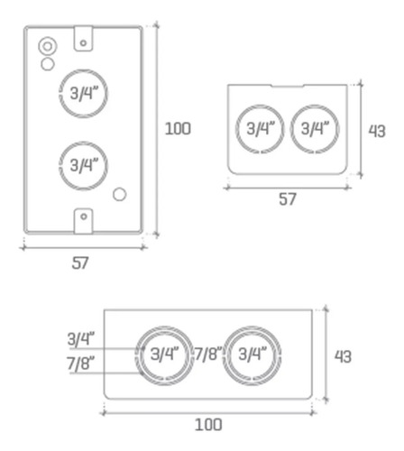Posee dos agujeros para conector de 3/4″ en el ancho.
